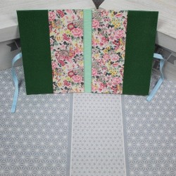 Protège carnet de santé, réalisé en papier simili cuir et tissu, couleur 2 tons Vert.