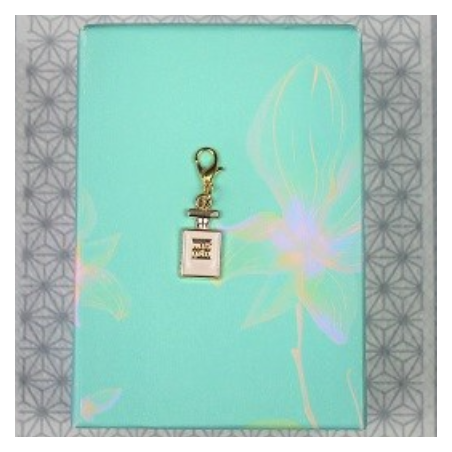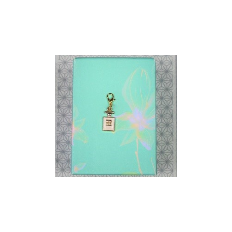 Tres joli Charm bouteille de parfum, en métal doré, émaillé avec mousqueton. Idéal pour confectionner vos colliers, bracelets ou porte clés.
