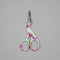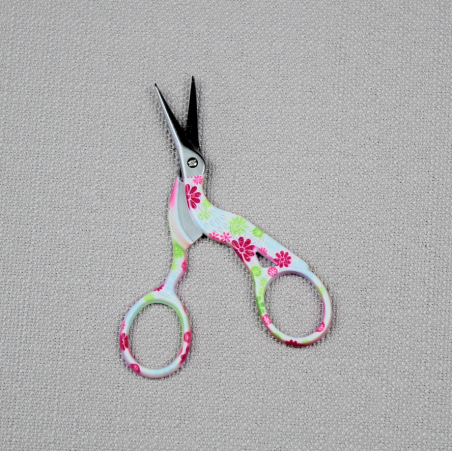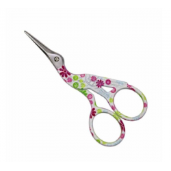 Tres joli petit ciseaux modèle Grue, couleur Blanc a motifs, parfait pour tout les petits travaux minutieux de couture ou de la broderie.