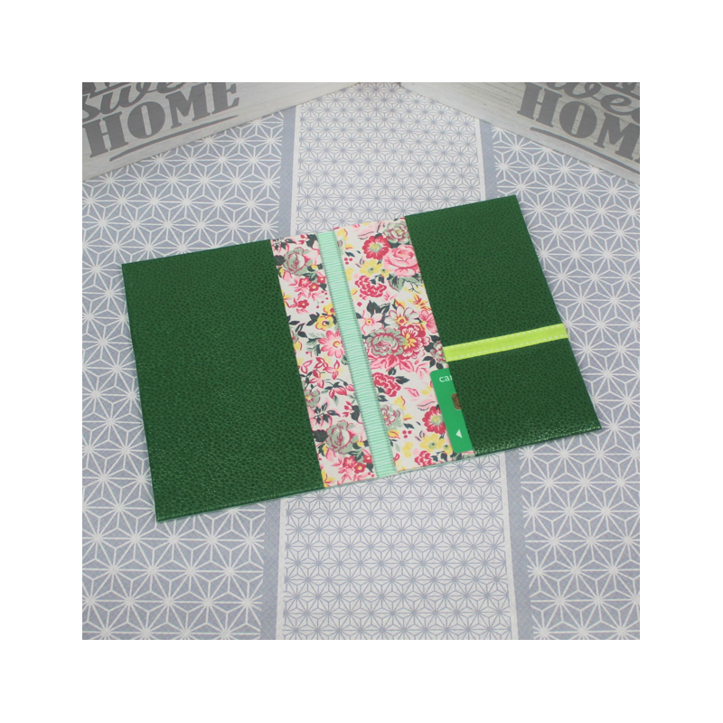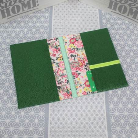 Ordonnancier, réalisé en papier simili cuir et tissu, couleur 2 tons Vert.