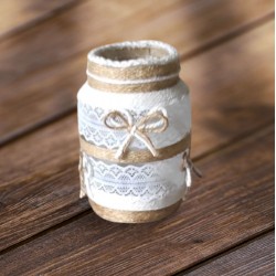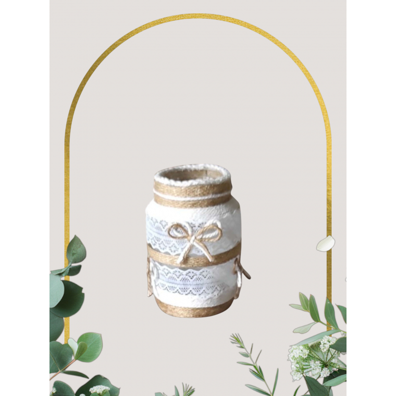 Photophore fait main, en verre, avec 2 rangées de dentelle, neuf. Pouvant servir également de Pot à crayons.