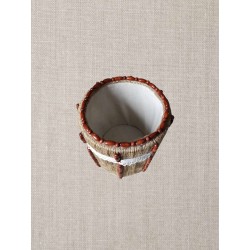 Cache pot fait main en bois, corde, dentelle et perles. Intérieur et dessous en tissu coton Ecru. Neuf