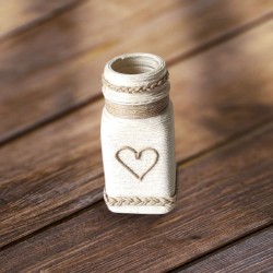 Diffuseur de Parfum fait main Ecru et Beige motif Cœur, en verre et cordon ciré. Neuf
