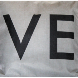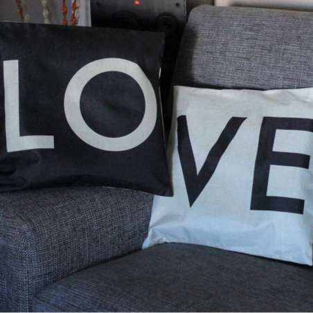 Duo de housses de coussins "LOVE", en Coton/Lin. Impression sur le devant, et uni sur le derrière.