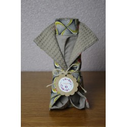 Fini l'essuie-tout en papier, optez pour l'essuie-tout lavable, réalisé en tissu et éponge Nid d'abeille100% coton Certifié Oeko-Tex, écologique et durable. Composé de 5 feuilles, dont 3 dessus en tissu Motifs Ondulations et 2 Uni Taupe et le coté éponge Taupe pour les 5.