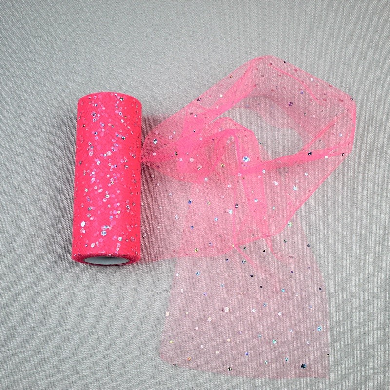 Tulle sequins 15cm, couleur Fuchsia, convient pour loisirs créatifs, déco, diverses occasions comme baptême, mariage...