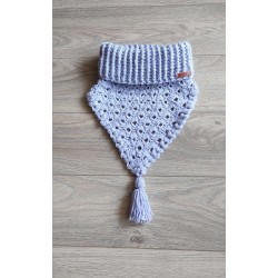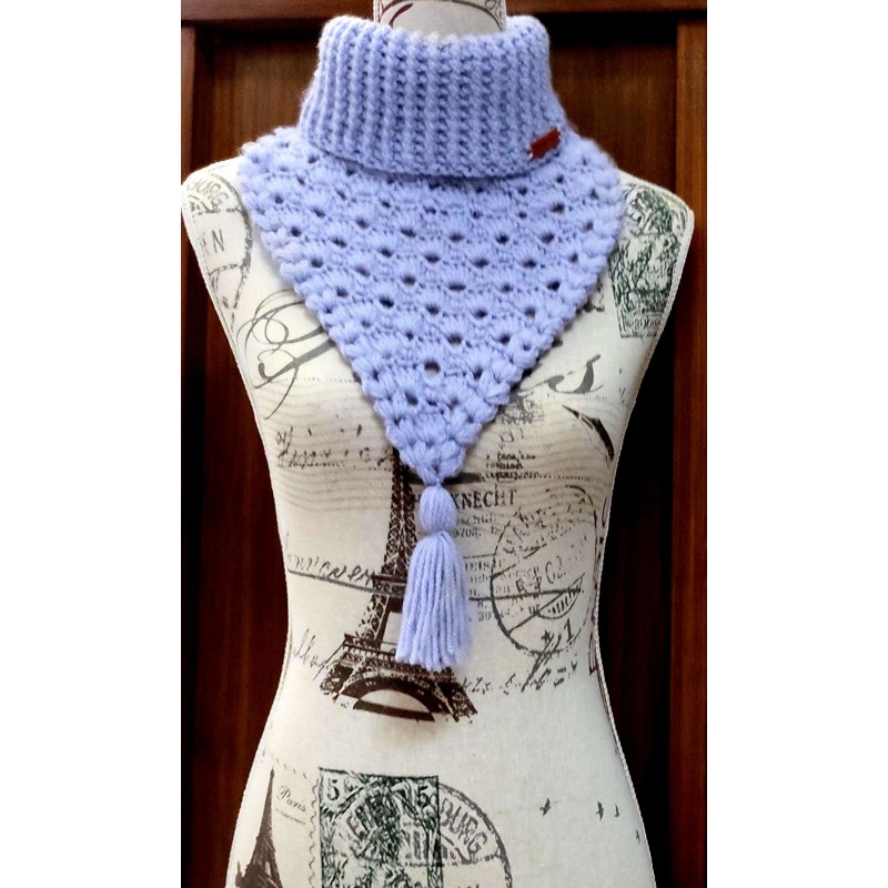 Très joli Col en laine, léger, doux et chaud, idéal pour préparer l’hiver. Fait main, neuf. Se porte aussi bien sur une veste ou une doudoune. Couleur Parme, motif Éventails.