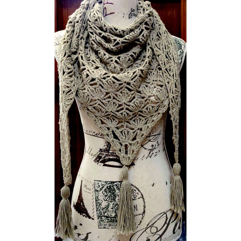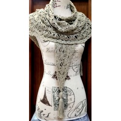 Châle chèche au crochet, fait maint ton Kaki.